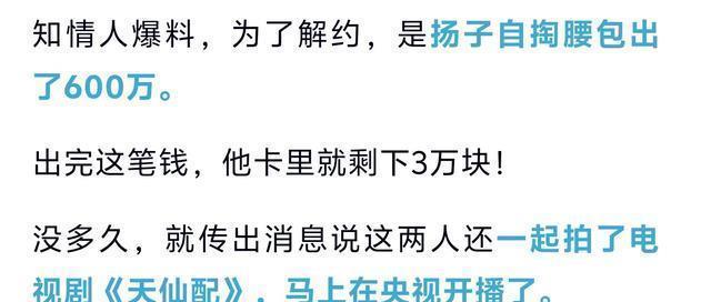 网爆大刀高高举起,又轻轻落下。 第一,是杨子为黄圣依赎身这个传闻。 今天要老生常谈一下关于杨子黄圣依这一对的情感纠葛以及港台娱乐圈和内地影视生态的问题。 很多人对于杨子和黄圣依这段情感评论的时候都避不开杨子当年出了600万帮黄圣依跟周星驰解约这个新闻。